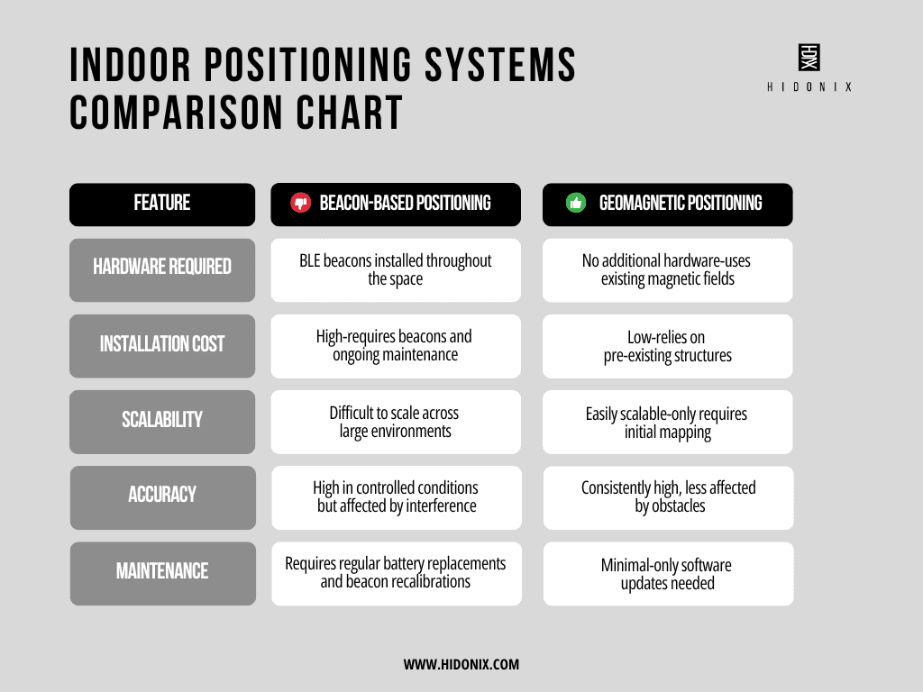 While beacon-based positioning has been widely adopted, geomagnetic field-based positioning is proving to be a more scalable and cost-effective alternative. With no need for additional hardware, minimal maintenance, and seamless smartphone integration, geomagnetic positioning is paving the way for a new era of indoor navigation.